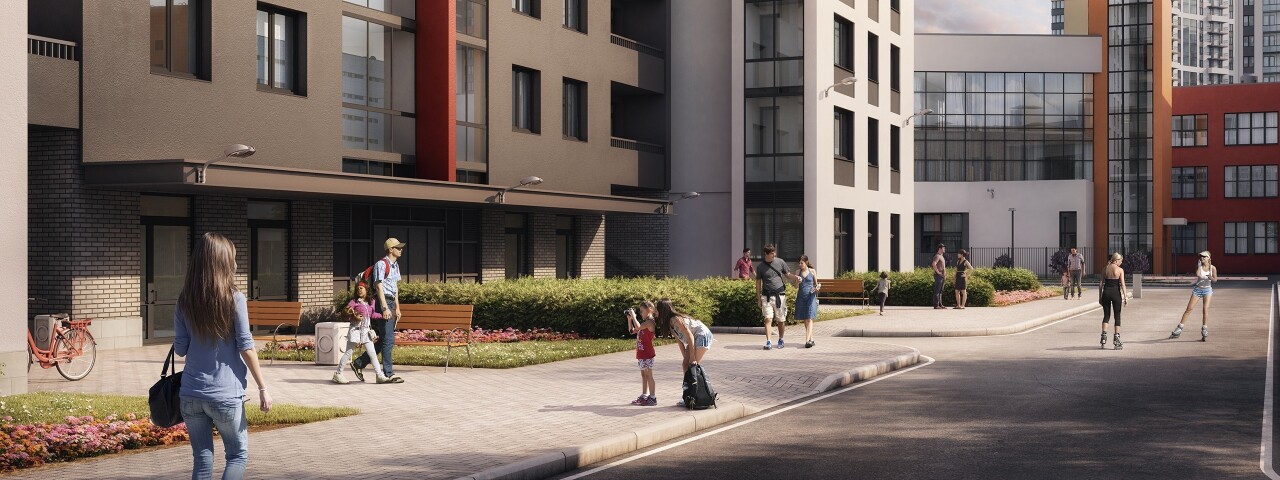 У детского сада и школы своя огороженная территория, своя зона для прогулок, игр и спорта. А автомобили можно ставить только в паркинге, двор без машин – ключевой принцип.