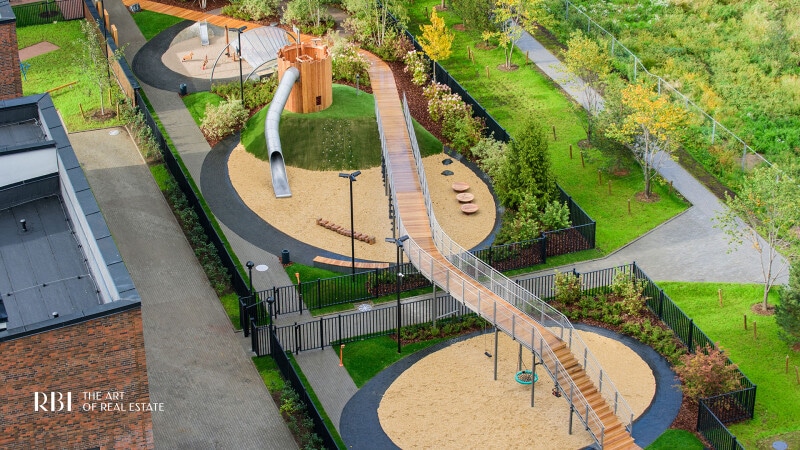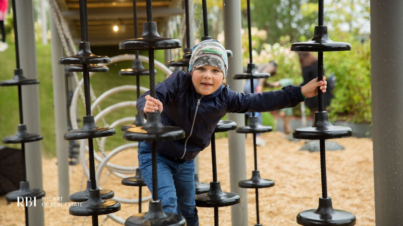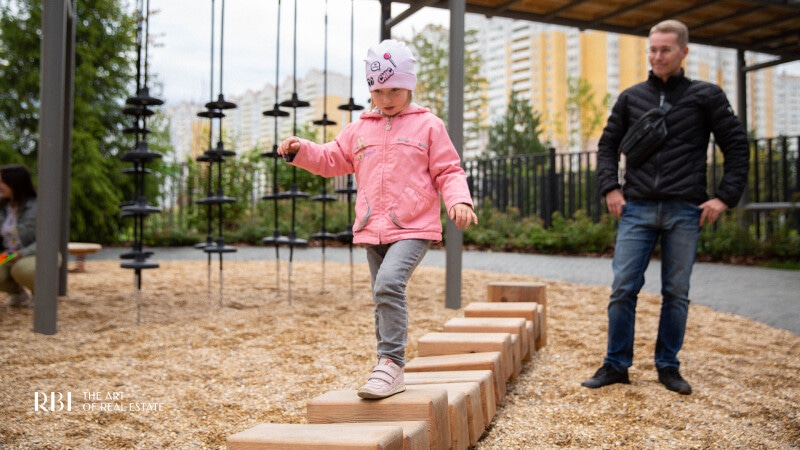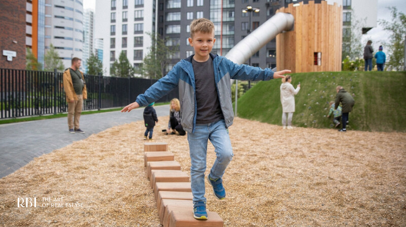 Оборудование сделано в Германии из прочной древесины (лиственница, робинья, дуб), собранной у предгорья Альп. Площадки этой фирмы есть в Петербурге только в объектах RBI — Ultra City и элитном доме Futurist — и в «Новой Голландии».