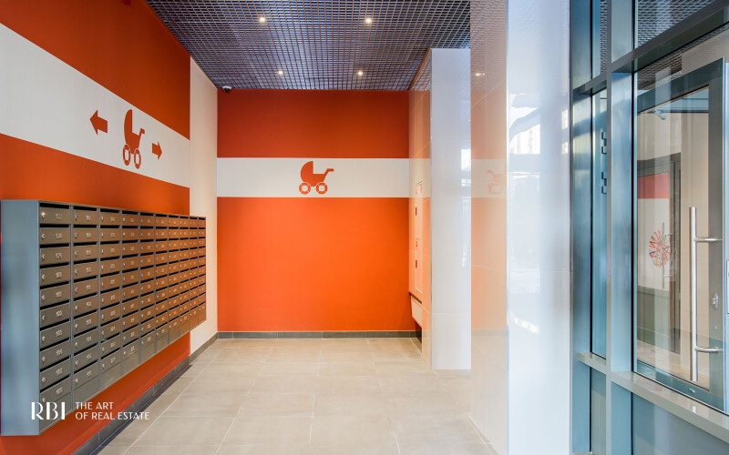 Холлы светлые и просторные (30–56 кв. м), с огромными витражными окнами. Дизайн поддерживает архитектурную концепцию. В каждой парадной предусмотрена зона для колясок.